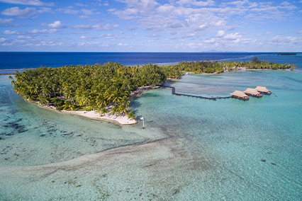 Vahine Private Island, Taha'a, secluded retreat on a private motu, bungalow accommodation, total 18 guests at one time. 5 nights accommodation in Taha'a including breakfast & dinner daily & 2 nights Papeete from $10,999pp